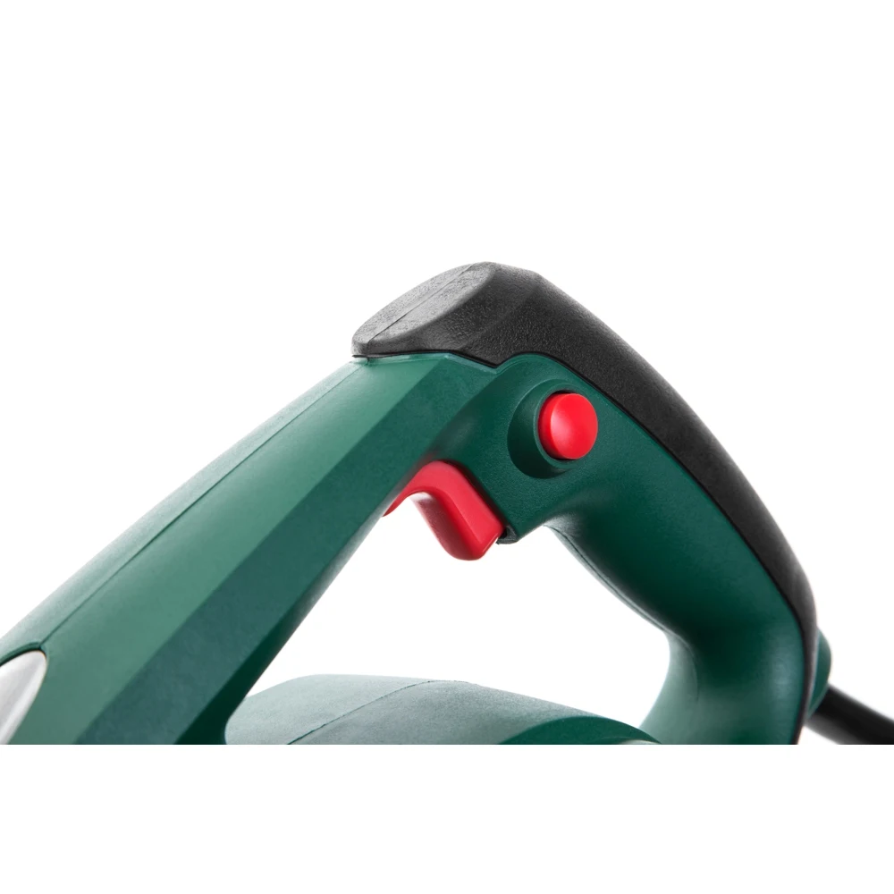 Легкий рубанок с шириной строгания 82 мм оснащен барабаном с 2-мя незатачиваемыми двусторонними лезвиями. Эластомерная накладка на ручке и широкая ребристая вспомогательная рукоятка позволяют надежно удерживать рубанок во время работы. Безопасность оператора обеспечивается блокировкой случайного пуска. Оснащен пластиковым кофром для хранения оснастки в корпусе рубанка, что позволяет всегда иметь ее под рукой.