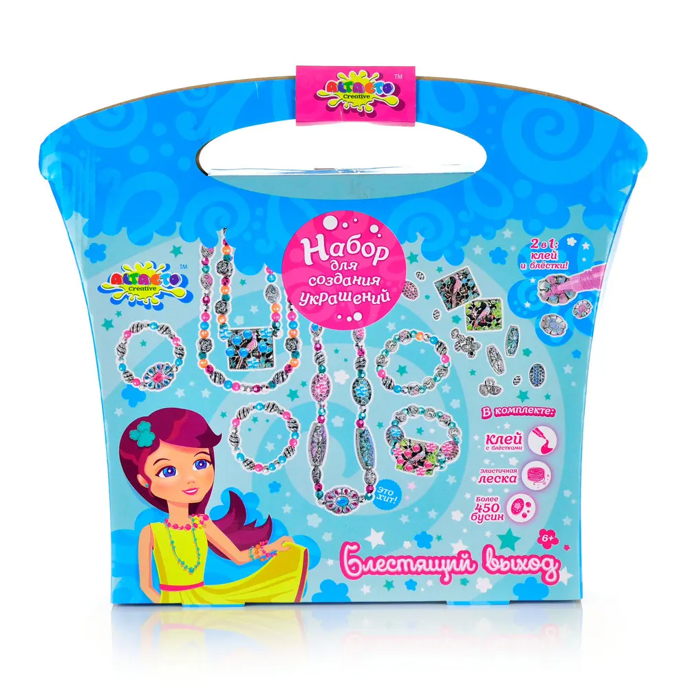 Набор Altacto Creative "Блестящий выход" включает всё необходимое для создания модных украшений своими руками: леску для плетения, более 450 бусин разных форм и цветов, аксессуары и клей с блёстками. Необычным клеем можно украсить бусины, создав яркие акценты на украшениях.