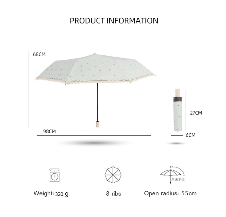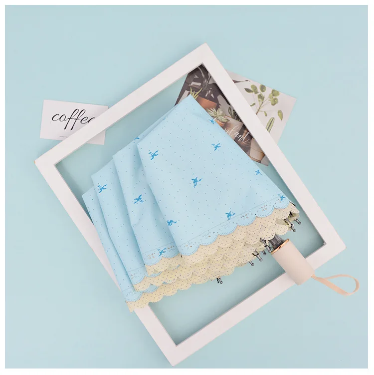 Портативный Ветрозащитный зонтик для женщин, три раза, анти-УФ, черное покрытие, ручная работа, 8 ребер, зонт Paraguas, элегантный кружевной солнечный и дождливый зонт