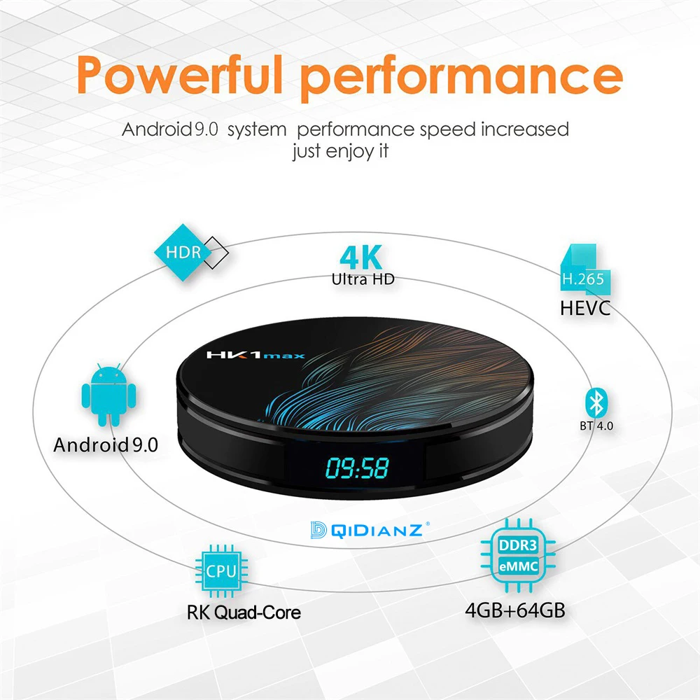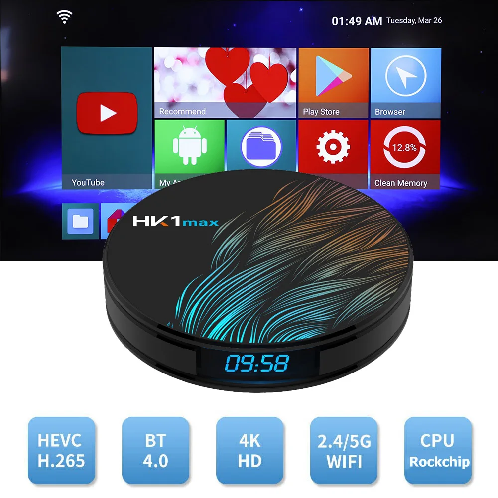 Модель: HK1MAX ОС: Android 9,0 Процессор: RK3318 четырехъядерный 64 бит Cortex-A53 GPU:Penta-Core Mali-450 до 750 МГц + Вспышка: EMMC 64 ГБ SDRAM:4 Гб Источник питания: 5 В/2 а постоянного тока Индикатор питания (светодиодный): Включение питания: синий; Режим ожидания: красный Поддержка декодера Формат: 4K VP9 видео декодер, H.265/H.264 видео декодер 1080P другие декодеры видео (VC-1, MPEG-1/2/4, VP6/8) Поддержка медиаформата: Avi/Ts/Vob/Mkv/Mov/ISO/wmv/asf/flv/dat/mpg/mpeg Поддержка музыкального формата: MP3/WMA/AAC/WAV/OGG/DDP/HD/FLAC/APE Поддержка формата фото: HD JPEG/BMP/GIF/PNG/TIFF HDR:HDR10 и HLG режимы Хост USB: 1 Высокоскоростной USB 3,0 3 USB 2,0 Кард-ридер: TF карты Файловая система HDD: FAT16/FAT32/NTFS Поддержка подзаголовка: SRT/SMI/SUB/SSA/IDX + USB Видеовыход высокой четкости: 4K (4096x2160 пикселей) OSD тип языков: английский/французский/немецкий/испанский/итальянский/и т. Д. LAN:Ethernet: стандарт 10/100 RJ-45 Беспроводной: WiFi 2,4G/5G BT: Встроенный 2,4G /5G/BT 4,0 Мышь/Клавиатура: Поддержка Мышь и клавиатуры через USB; Поддержка 2,4 ГГц беспроводной Мышь и клавиатура через 2,4 ГГц USB донгл HDMI:HDMI 2.0a для 4k-60Hz 3D:3D видео форматы Другие особенности: бесплатный поиск в Интернете, тысячи приложений android, много видов игр и т. д. Сертификация:?CE,FCC,ROHS Что в коробке: -1 x HK1 MAX Box -1 пульт дистанционного управления -Источник питания-1 шт. -Кабель HD-1 шт. -Руководство пользователя-1 шт.