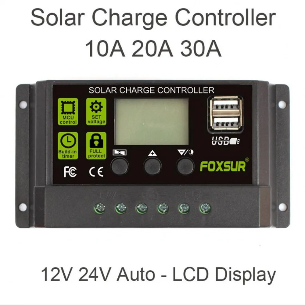 Fuchs Модернизированный Солнечный контроллер 12 В/24 В Автоматическая идентификация 10A 20A 30A контроллер ЖК-дисплей двойной USB выходной контроллер