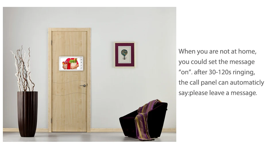 Если вы не дома, вы можете установить сообщение «on». После 30-120s звон, панель вызова будет говорить автоматически «Пожалуйста, оставьте сообщение»
