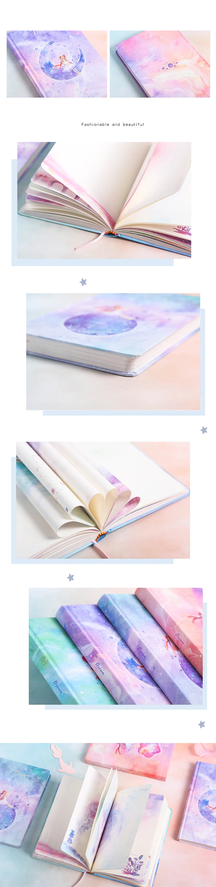 Дневник с жестким покрытием и надписью "Dream Stars" Посылка включает в себя один ноутбук 128 листов/256 страниц Высококачественная жесткая картонная крышка Размер: 142 мм x 210 мм Гладкое письмо, 180 градусов разложено, легко писать Качественное производство, экологически чистые чернила, хорошо подходят для глаз Подходит для учебы, путешествий, работы и подарка Доступно 4 чехла: A, B, C и D Быстрая обработка и хорошая упаковка