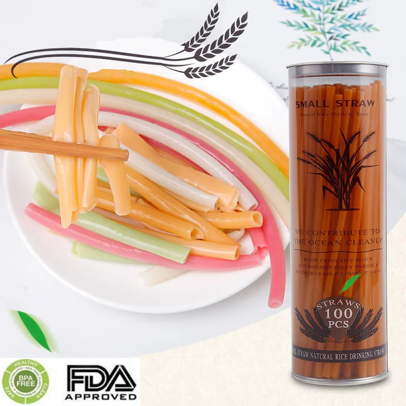 100 шт. биоразлагаемая Питьевая солома съедобные одноразовые рисовые соломы красочные холодные напитки соломинки кухонный Бар Инструмент бар аксессуары