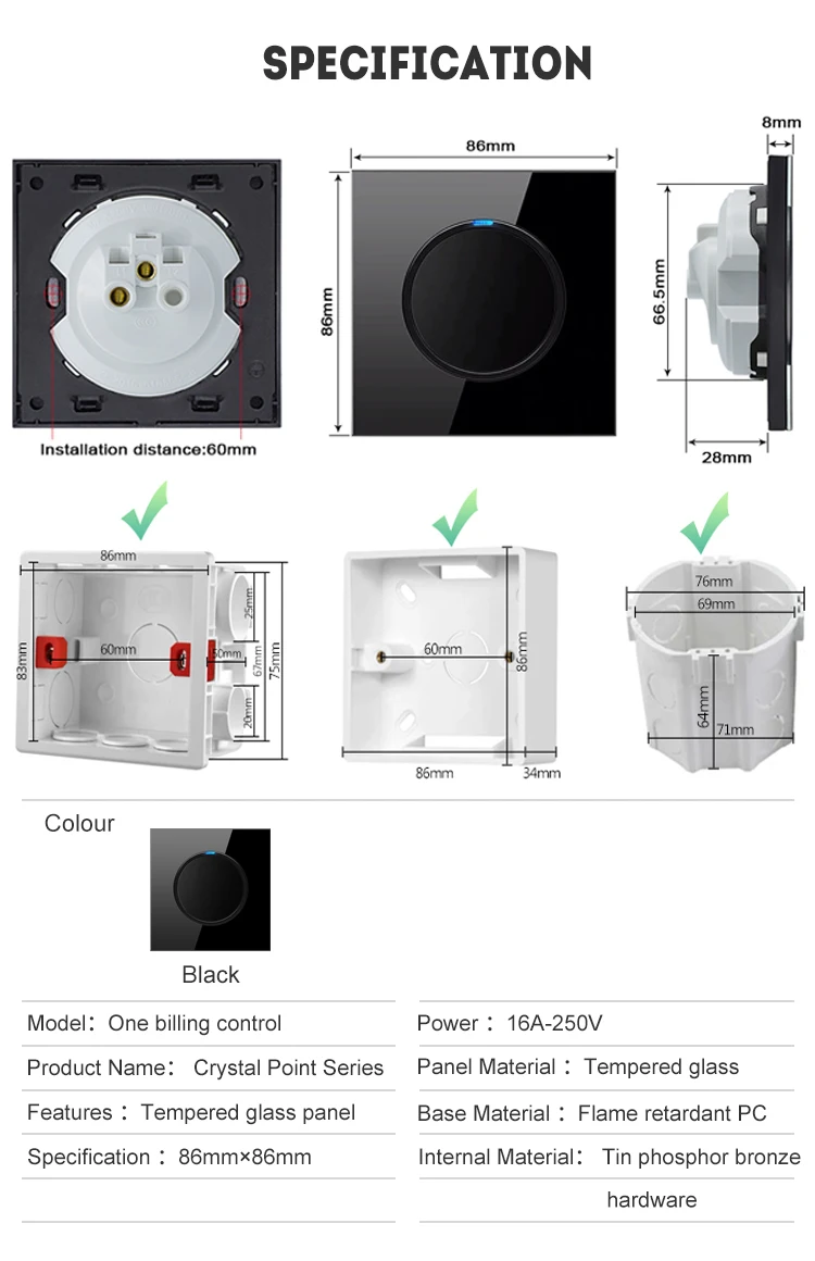 Размер панели: 86 мм * 86 мм