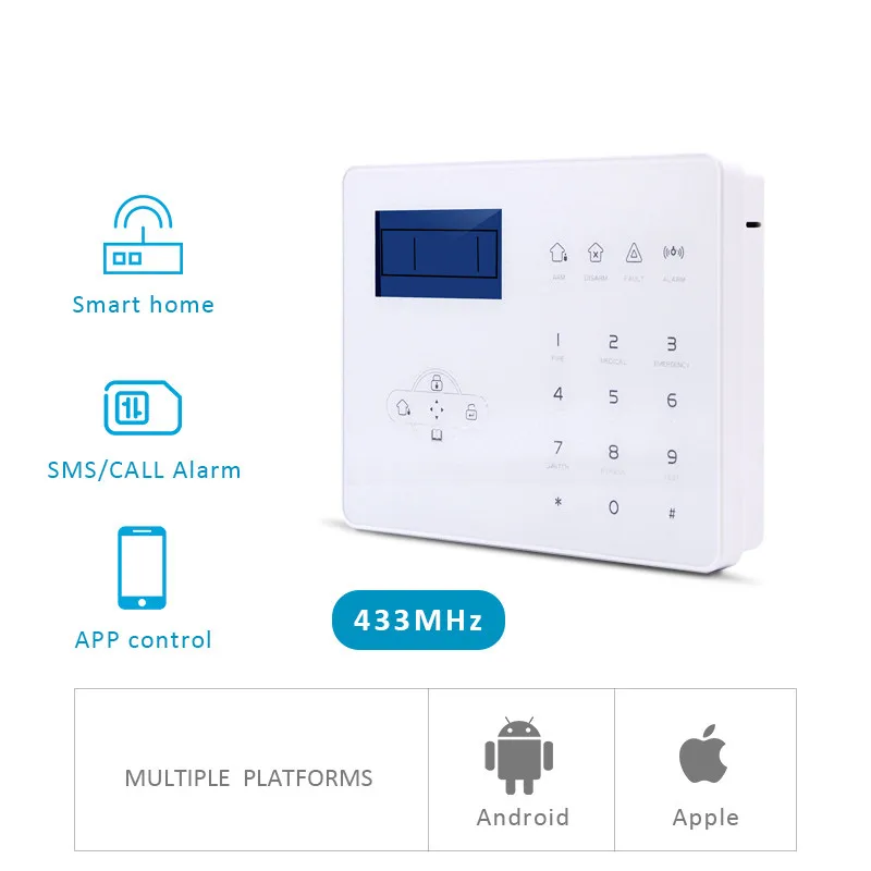 1. Индикация речи для всех этапов работы, ЖК-экран на английском языке2. Позволяет установить тел-линия вкл/выкл мониторинг состояния/поворот для использования GSM сигнализация передачи автоматически3. Встроенный GSM модуль, поддерживает вызов или отправку sms-сообщения на мобильный телефон, когда срабатывает сигнализация4. Встроенный дверной Звонок5. Встроенный громкоговоритель высокого тона6. Беспроводная Частота 433 МГц/868 МГц7. Поддерживает двустороннюю связь, позволяет подключить 8 беспроводных пультов дистанционного управления и 8 электронных переключателей, 1 беспроводной дверной звонок иНеограниченное количество односторонней беспроводной сирены.8. Дистанционное управление через телефон/голосовую сигнализацию/10 секунд для прослушивания и записи в режиме реального времени9. Программируемые 8 проводных зон/32 беспроводных зоны10. 2 телефонных номера центра сигнализации (номер CMS) / 4 голосовых номера/протокол ID контакта11. Состояние Arm / disarm после выключения питания12. 120 журнал сигнализации и запрос/10 секунд для записи13. Проверка беспроводного устройства потери или низкого заряда батареи14. Встроенная перезаряжаемая батарея 11,1 В/1000мА до 8 часов при выключении питания15. В комплект входит внешний адаптер питания 15 В/2000 мАТехнические параметрыФункция для безопасности дома, магазина, магазина, сада ModuleGSM + PSTNПолноэкранная сенсорная панель, ЖК-дисплейZones8 проводные зоны, 32 Беспроводные зоныБеспроводная Частота 433/868 МГцВнешний адаптер питания 15В/2000маРезервная батарея 11,1 В/1000мАСигнализация loudness110 дБДоступные аксессуары датчик движения, датчик двери, датчик дыма, детектор газа, дверной звонок,Сенсорный светильник, клавиатура, сирены, датчик разрыва стекла, датчик уровня воды, датчик теплаПодробные параметры, встроенный дверной звонок, встроенный громкоговоритель высокого тонаПоддержка двусторонней связи, можно использовать SMS, звонки, пульт ДУ и клавиатуру для arm или disarmДемонстрация товара