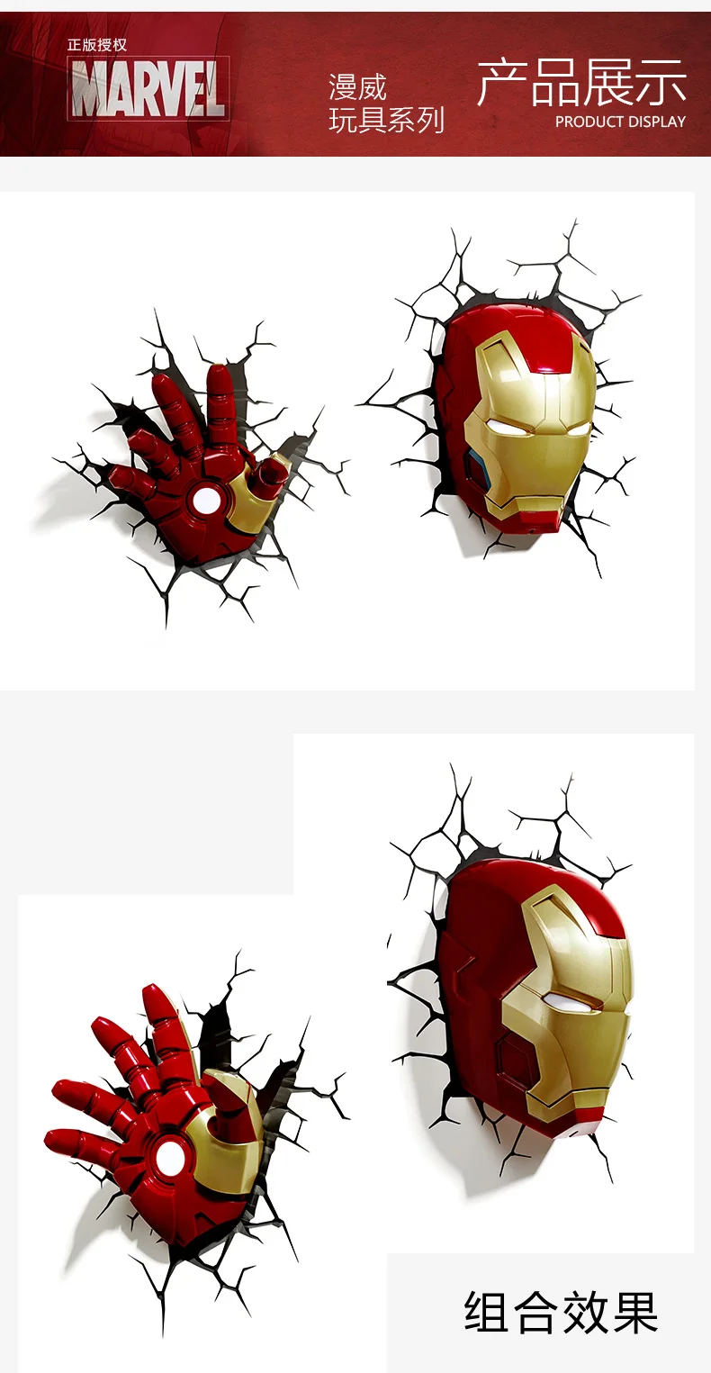 Acecorner Мстители Marvel Железный человек лицо ручной светодиодный светильник для спальни гостиной 3D креативный настенный светильник украшение ночник детский подарок