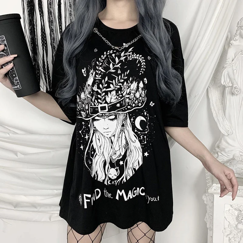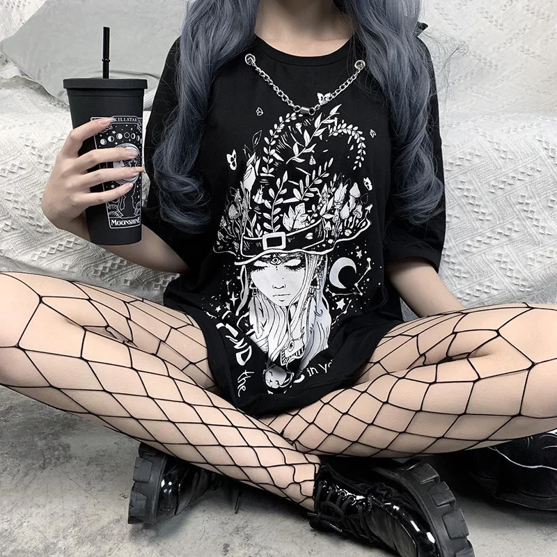 Уличная Готическая Футболка с принтом для девочек