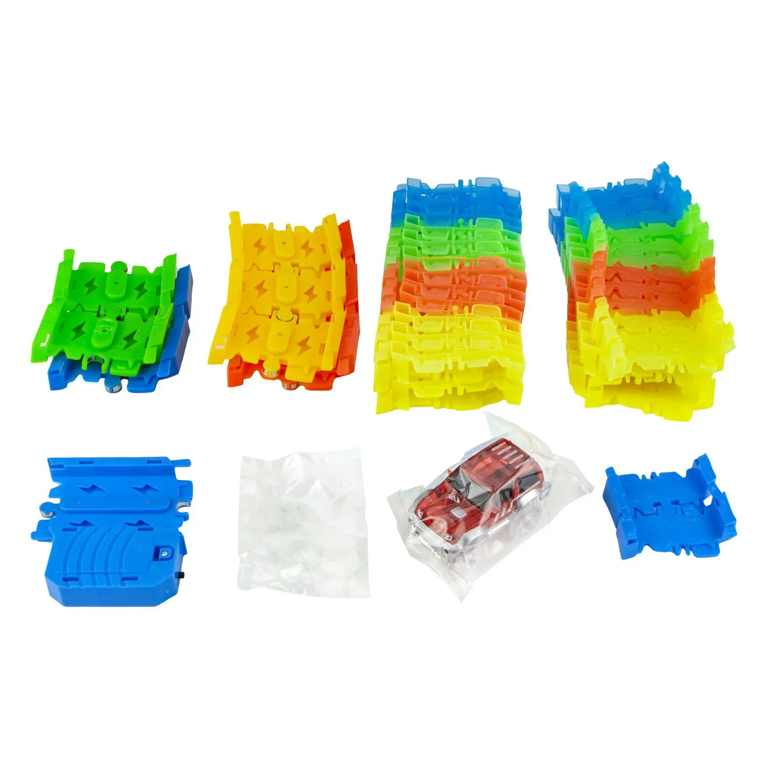 -Included are multi-colored elements for assembling a flexible track,Which will be the basis for an interesting story game.