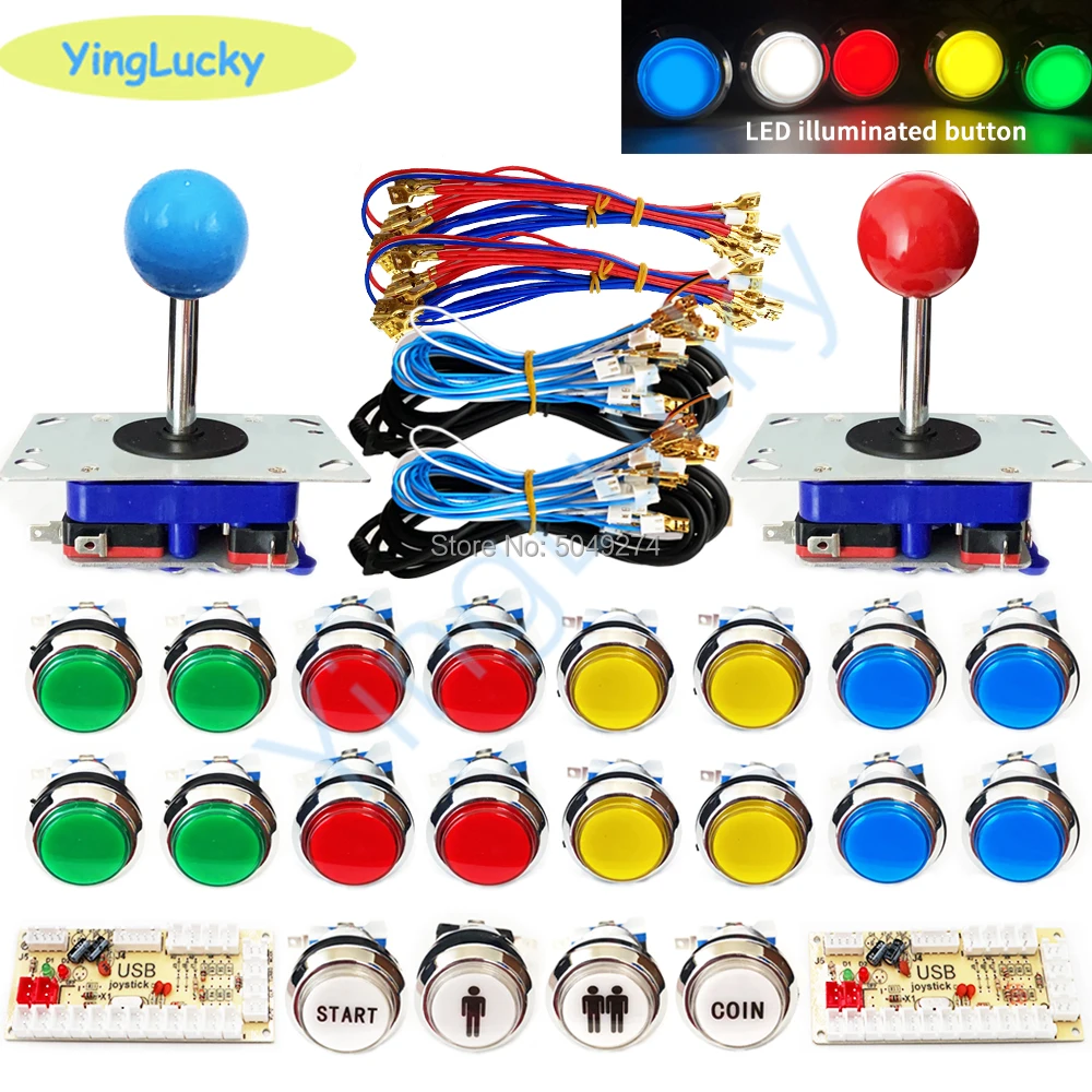 Яркий Состав комплекта: 1 joystick 2X высококачественный джойстик для копирования zippy 2 》 16X 12V 33 мм посеребренные кнопка 3 》 1X монета 4 》 1X 1P 5 》 1X2P 6 》 1X старт 7 2X 2X USB набор кодировщиков с нулевой задержкой