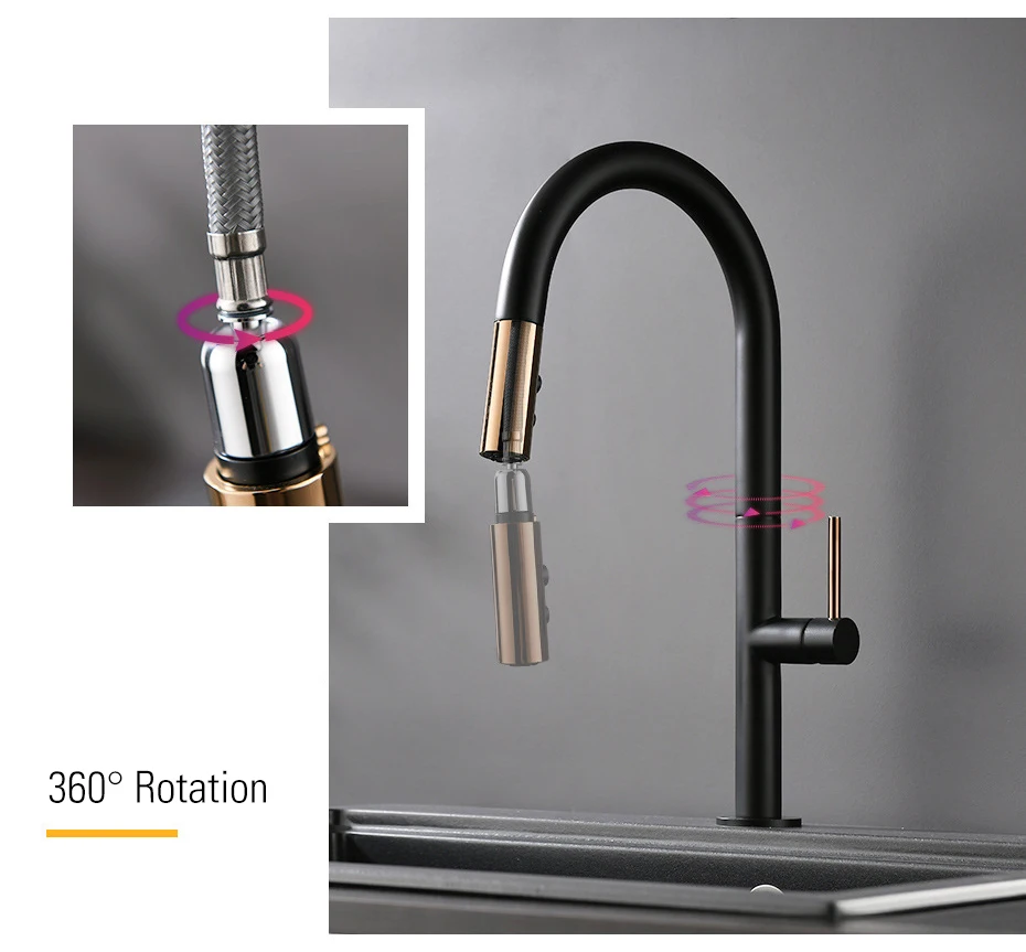 Черный сенсорный кран для кухонной раковины, умный сенсорный кран, смеситель горячей и холодной воды, кран, выдвижной белый Grifo, современный роскошный латунный кран Torneira