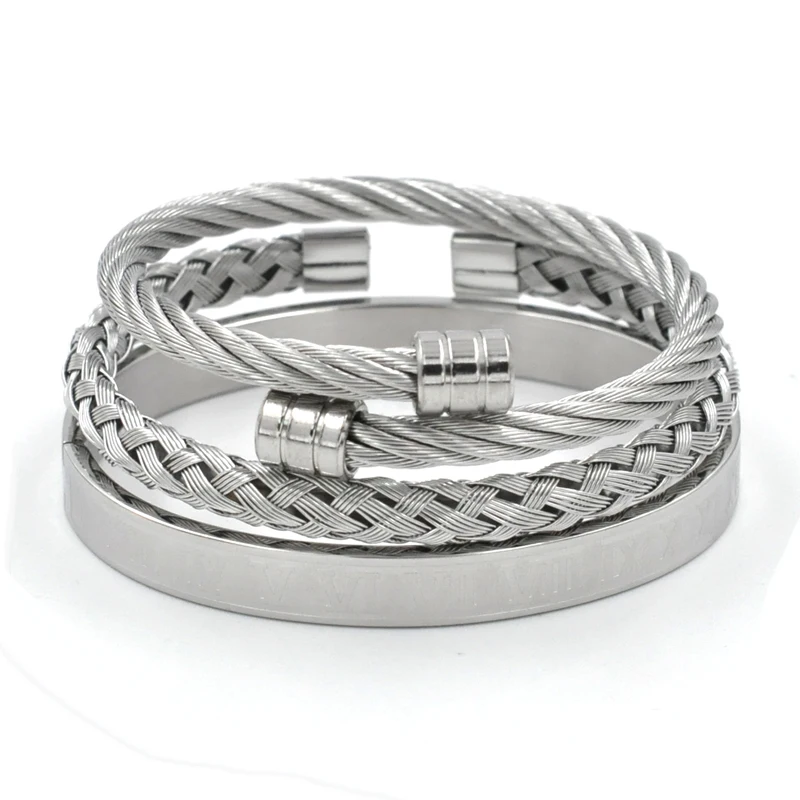 Товар:Роскошный набор из титановой стали в римском стиле браслет с цифрами, мужской браслет с пряжкой золотого и черного цвета, браслеты с проволокой, ювелирные изделия ручной работы
