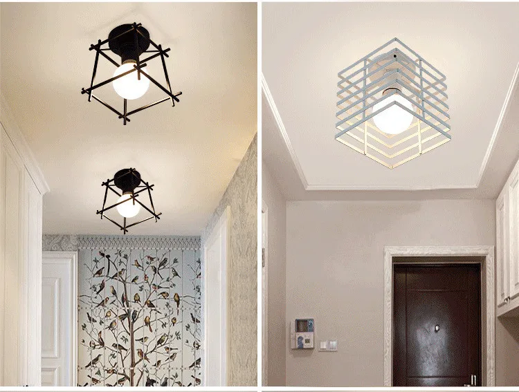 Потолочный светильник Kobuc Лофт с геометрическим рисунком E27 лампа в комплекте черный металлический коридор балкон потолочный светильник для прохода