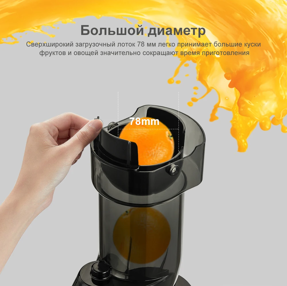 Большой загрузочный лоток: 78 мм Широкий загрузочный желоб легко принимает крупных кусков фрукты и овощи значительно снижает преп раз. Подтеков сока носик помогает создать разные соков и промойте между рецепты.