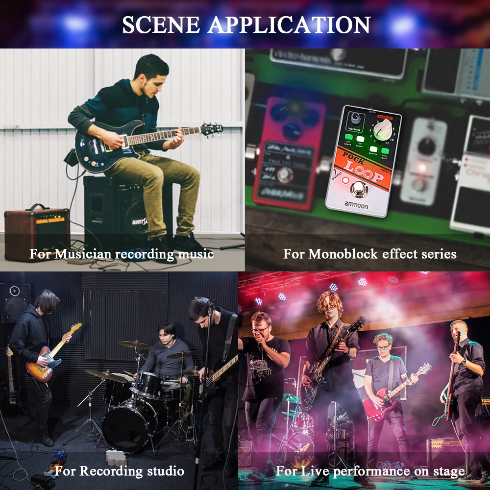 Полностью металлический корпус, прочный и прочный; Стандартный 1/4 дюйма моно вход/выход jack; DC 9V 300mA источник питания.