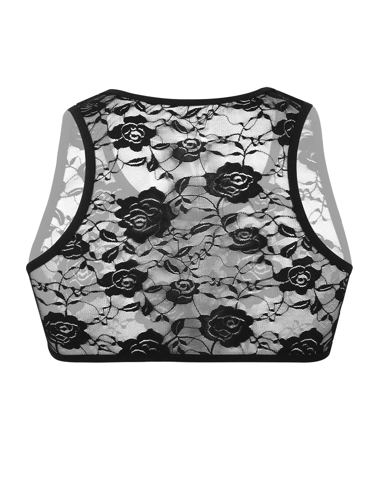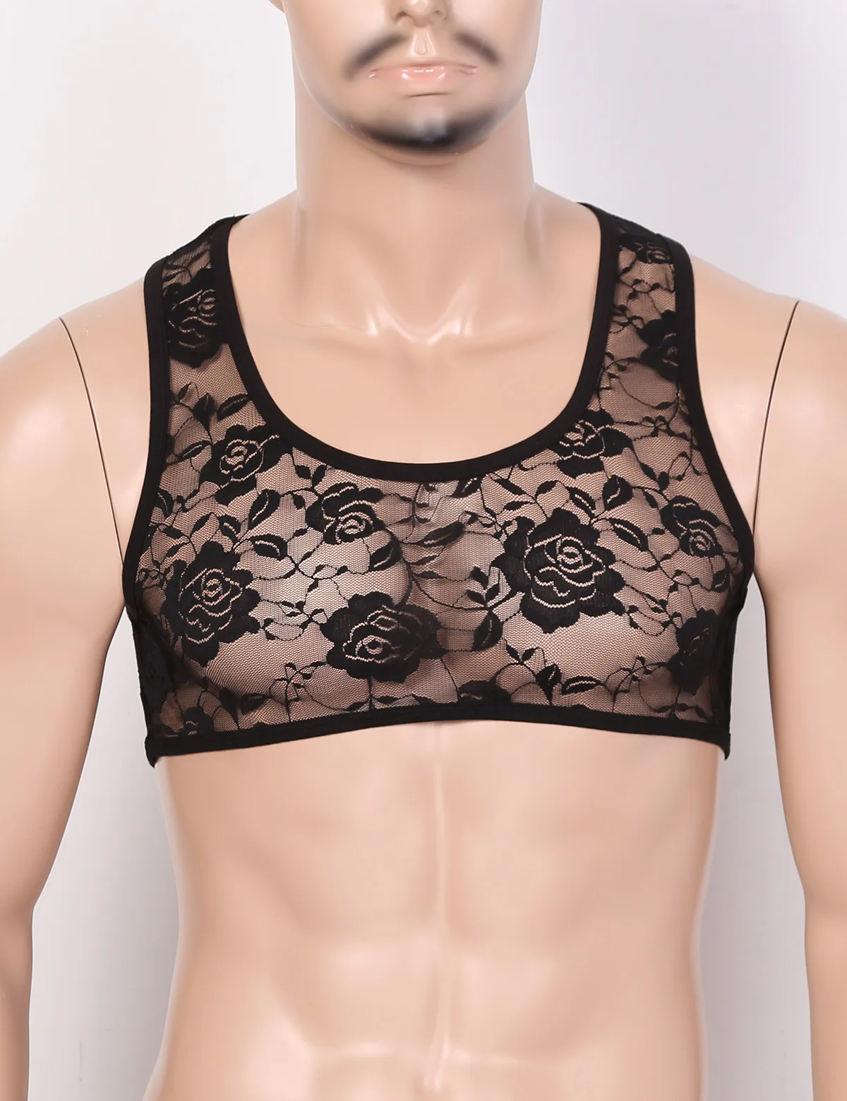 Мужской Эластичный короткий жилет с цветочным кружевом, укороченный топ, застежка-молния.