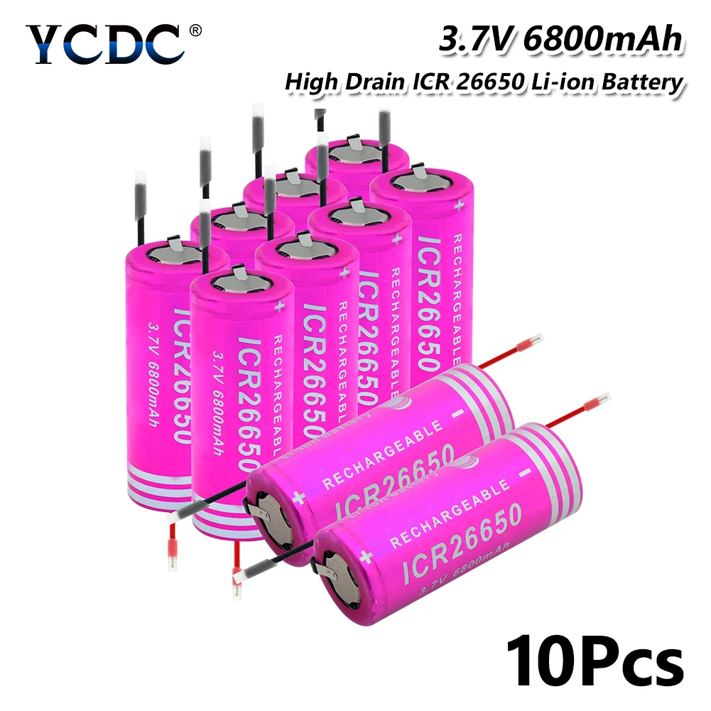 Перезаряжаемый с высоким потоком энергии26650БатарейкаС соединительными проводами, Стабильная скорость разряда, Отсутствие эффекта памяти.