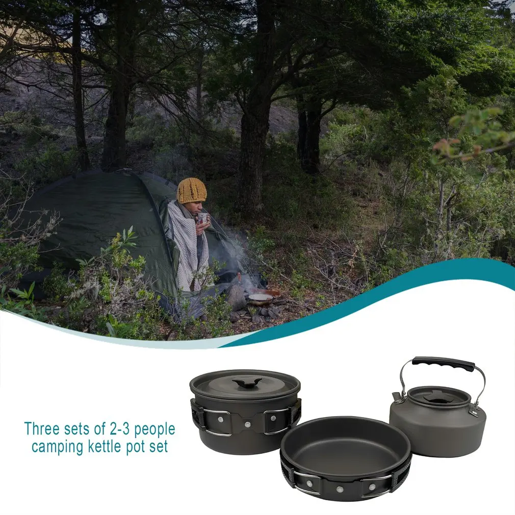 Название продукта: 2-3 человека комплект для кемпинга с чайником, уличная посуда