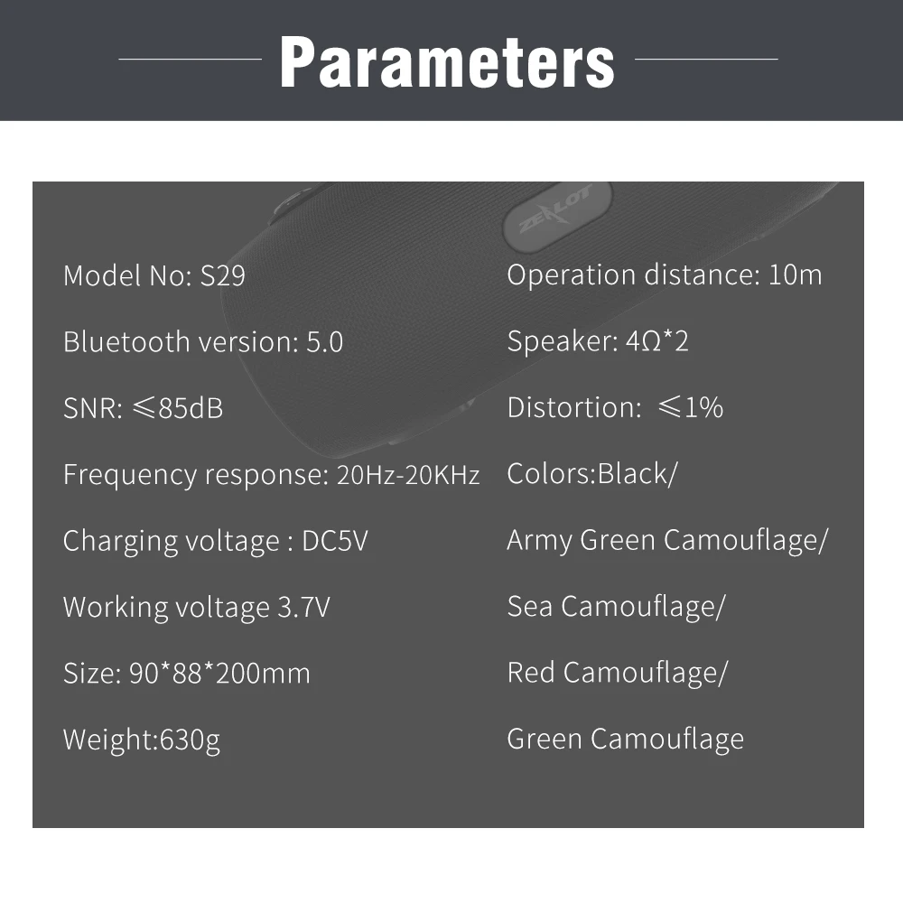 ZEALOT S29 беспроводной синий зуб динамик портативный динамик FM, музыкальный центр сабвуфер + фонарик + Мобильная мощность + Поддержка tf-карты