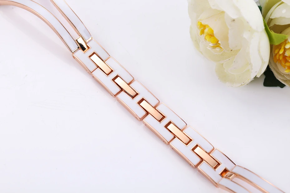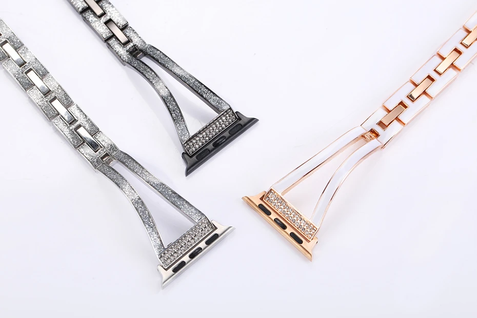 Очаровательный вид:Блестящая Белая эмаль на тонкой розово-золотой ленте, которая дополняет ваше запястье. Блестящие Стразы ручной работы создают завораживающий эффект.