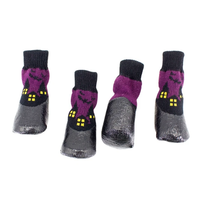 Водонепроницаемые носки для домашних животных на Хэллоуин, противоскользящие грязные нескользящие носки для маленьких средних и больших собак
