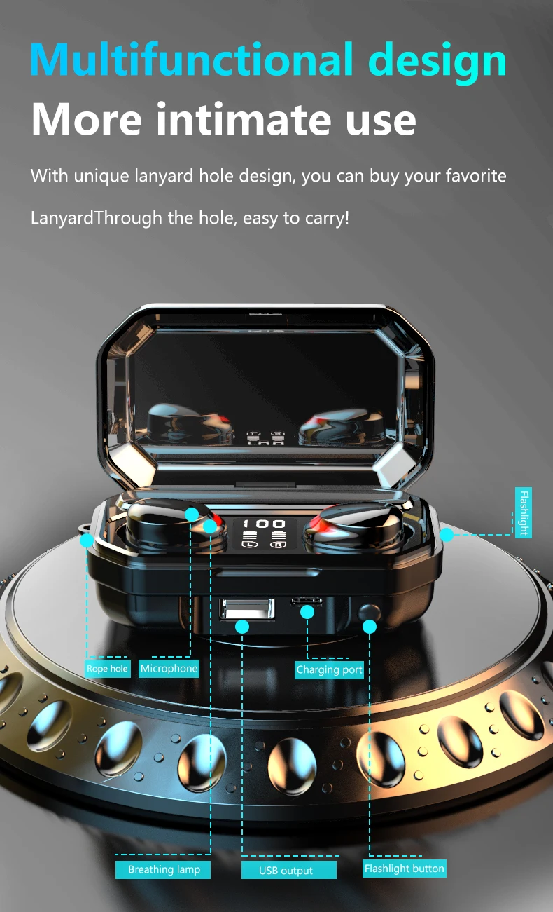 Новейшие наушники-вкладыши TWS с бинауральные гарнитуры стерео Bluetooth гарнитура с 5,1 чип дает вам очень эффективной производительности беспроводной сети.