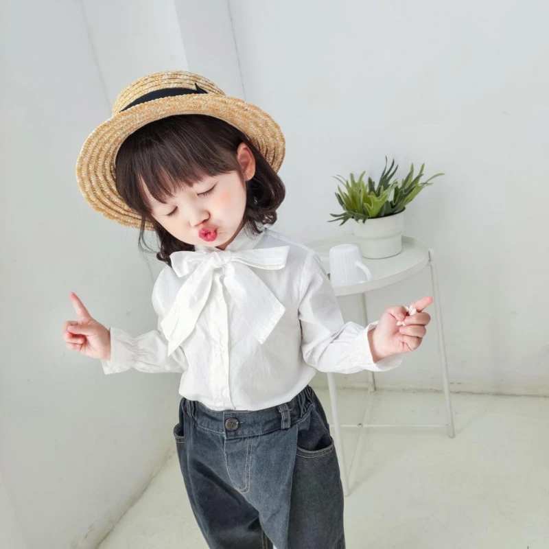 2. Осенняя Милая рубашка с галстуком-бабочкой для девочек, простой стиль, модный и универсальный, может использоваться в различных стилях.