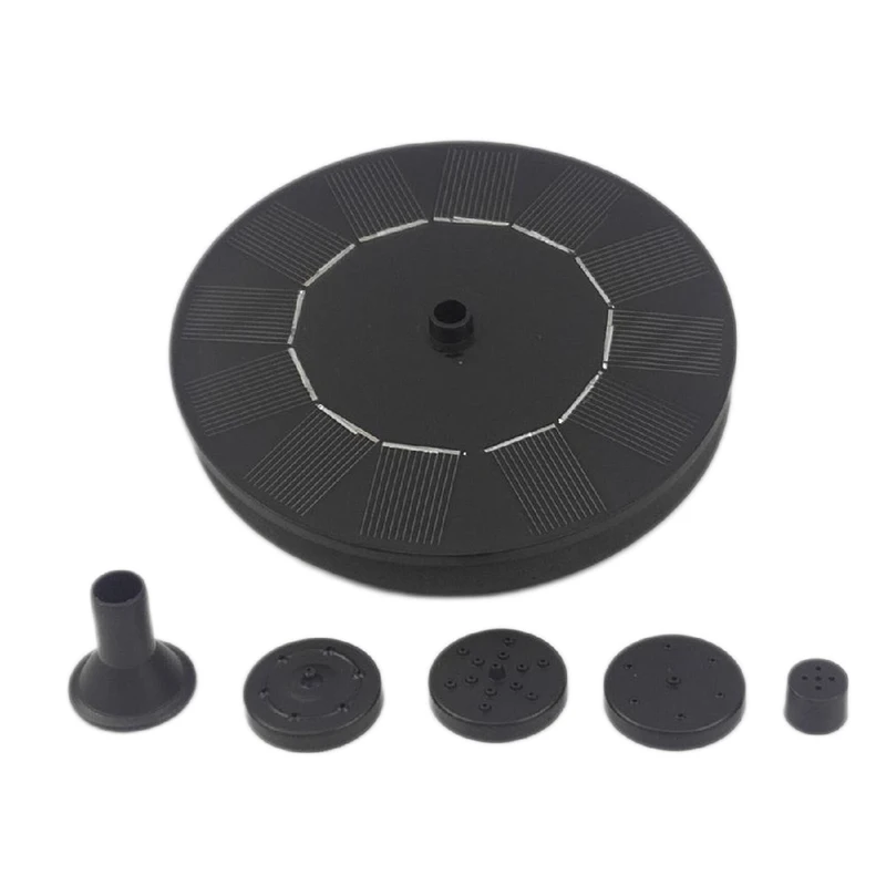 Solar powered, Runs automatically, no battery or electricity needed! Easy to install and use Suitable for bird baths, fish tank, small pond, garden decoration, water circulation for oxygen Easy cleaning; easy reallocation, no plugs required, small and compact Multiple fountain heads for different water patternsSPECIFICATIONS: