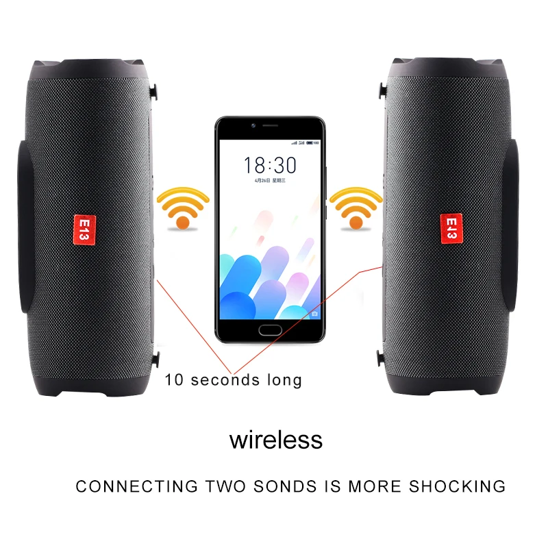 E13 беспроводной bluetooth динамик портативный стерео сабвуфер динамик, портативный Открытый водонепроницаемый динамик, музыкальный центр, поддержка usb, TF карта, радио