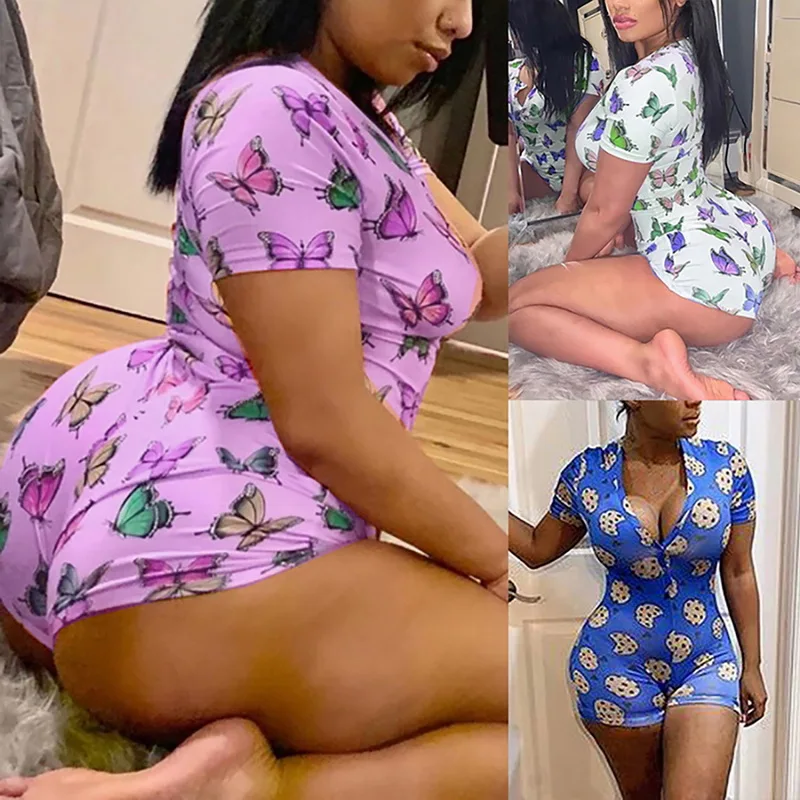 Эластичные сексуальные пижамы для взрослых женщин, плюс размер, боди с пуговицами, трико, короткие пижамы, комбинезон, комбинезоны, вечерние.
