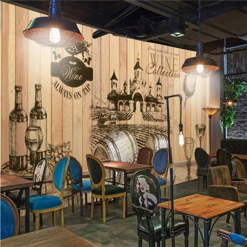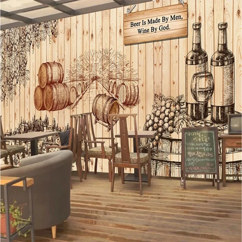 Europe and America Vintage Hand-painted Wine Wine Winery Wall Paper 3D Industrial Decor Wood Board Background Mural Wallpaper 3D