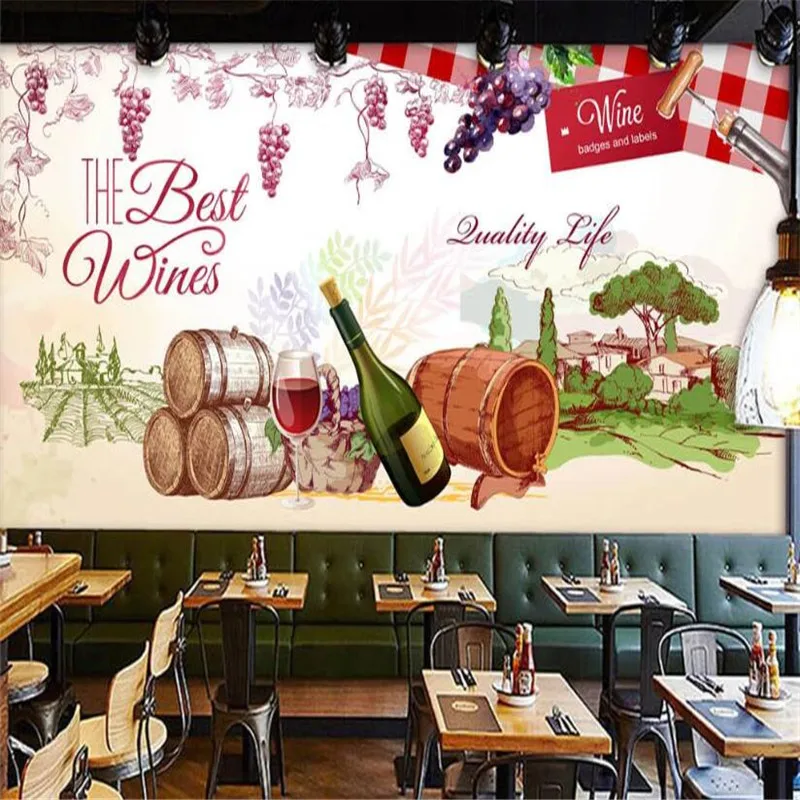 Europe and America Hand-painted Vintage Wine Winery Background Wall Paper 3D Bar KTV Industrial Decoration Mural Wallpaper 3D