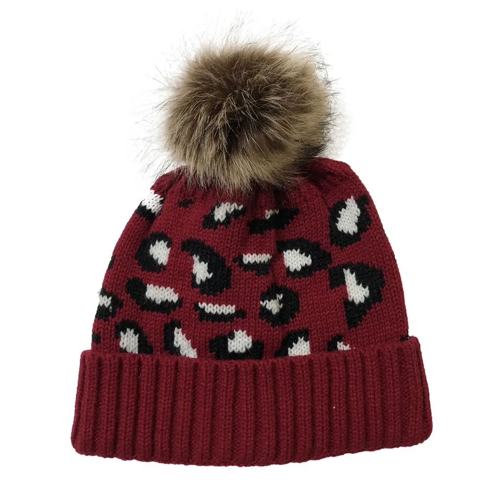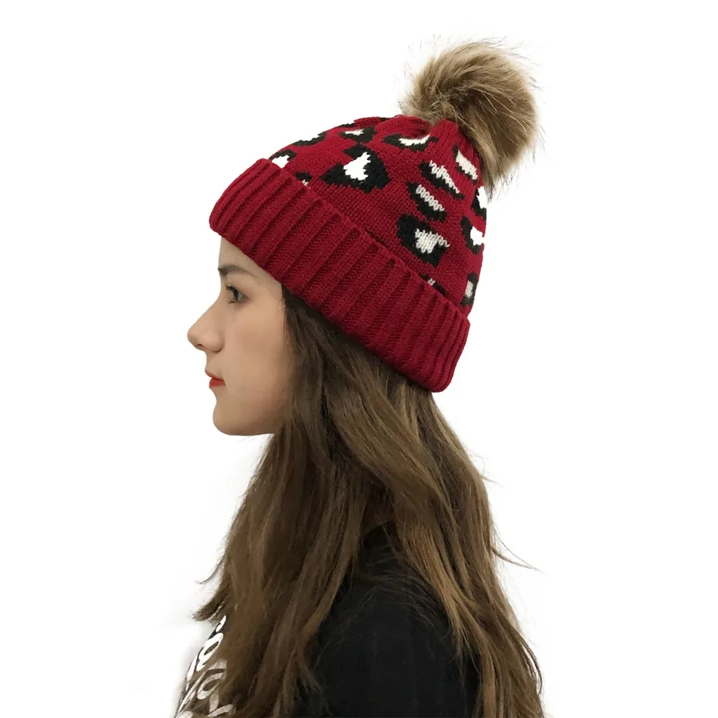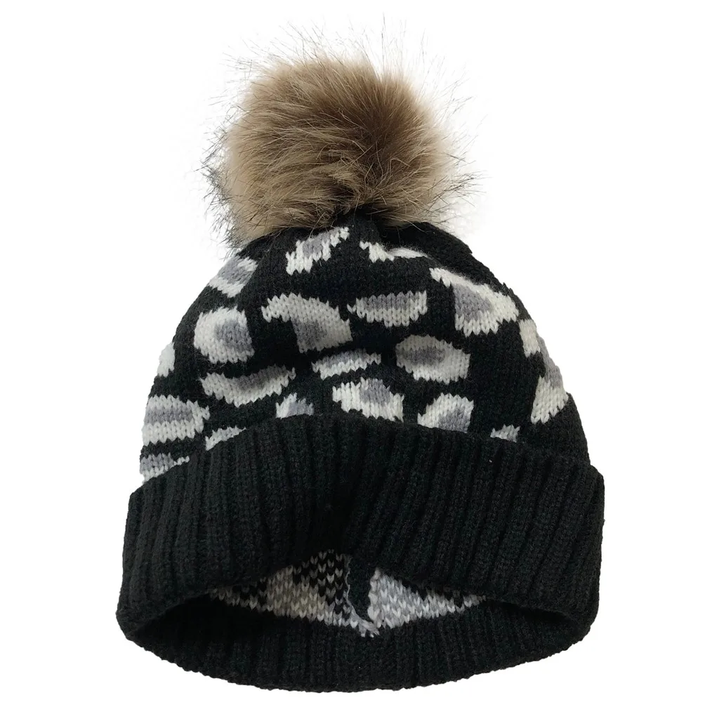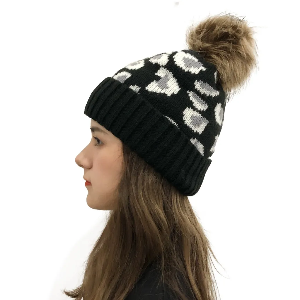 Женские повседневные леопардовые стеганые уличные плюшевые шапки вязаная шапка