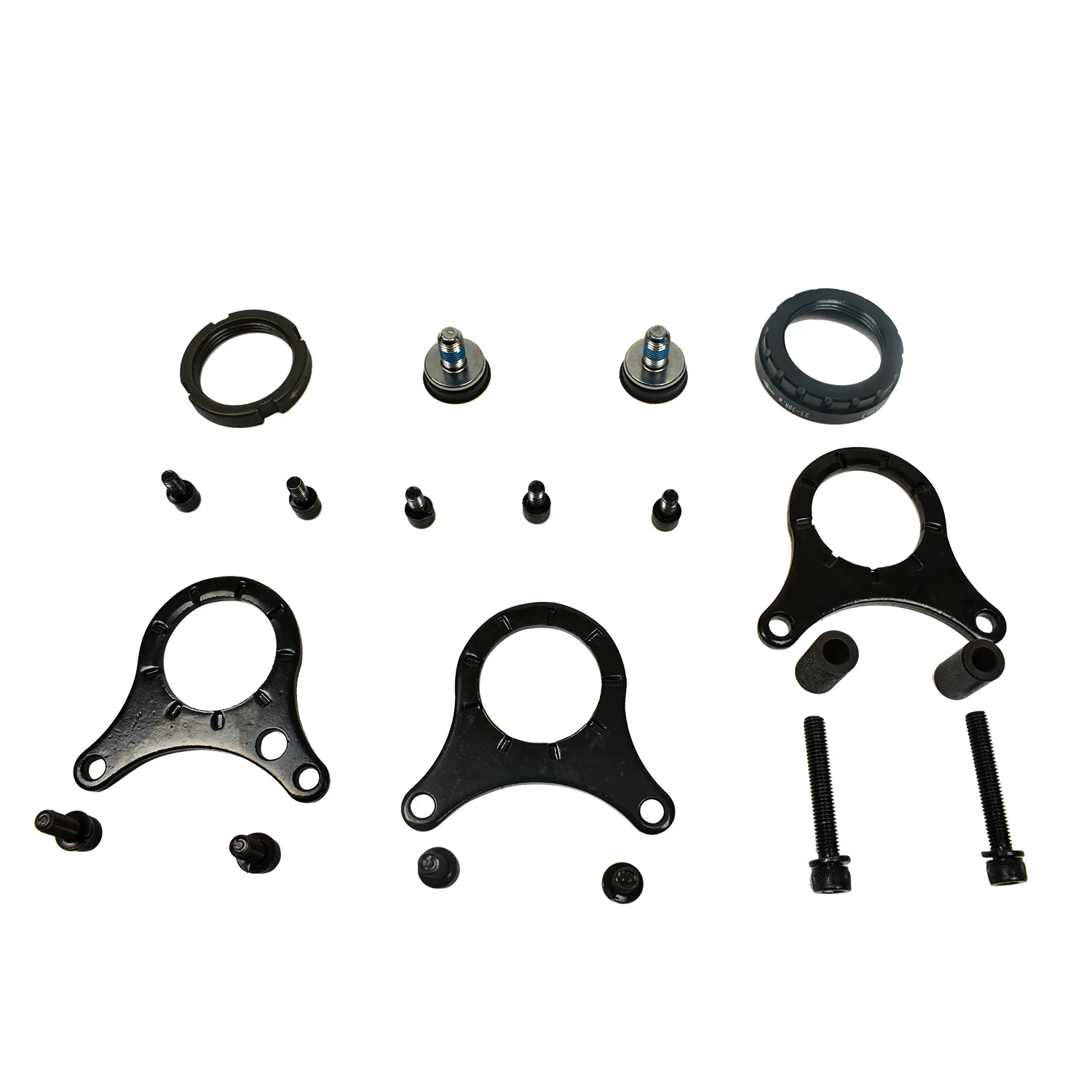 Наборы для среднего привода предназначены для велосипедов с D 68 мм (2,68 дюйма) или d73мм (2,87 дюйма) и полных велосипедов с широким нижним кронштейном d100мм или d120мм. Широкая нижняя крышка кронштейна и внутренний диаметр 35 мм.