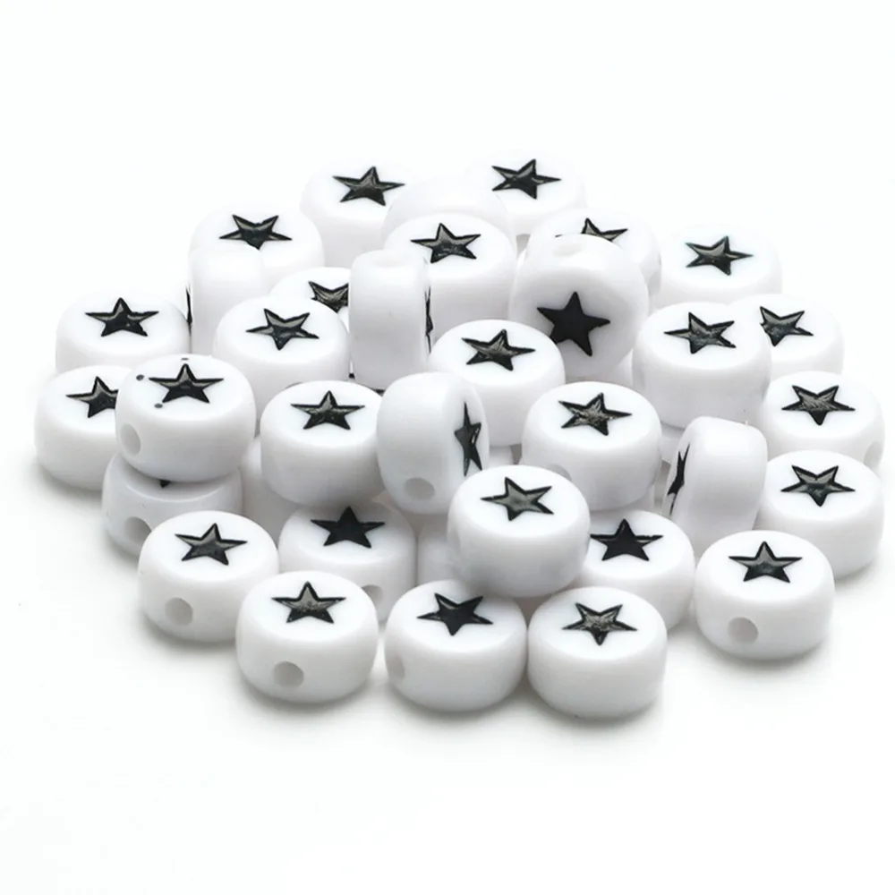 500 шт Круглые белые акриловые пластиковые бусины Diy детские бусы черные звезды свободные бусины для изготовления ювелирных изделий Diy Браслеты