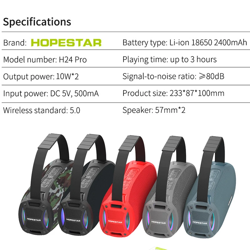 Hopestar H24 Pro 20W portable wireless bluetooth speaker outdoor waterproof subwoofer subwoofer music center, support TWS 1+1