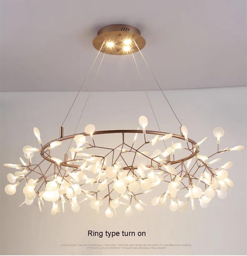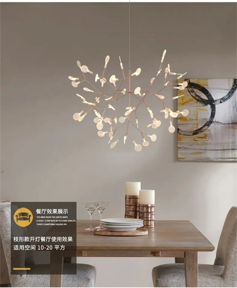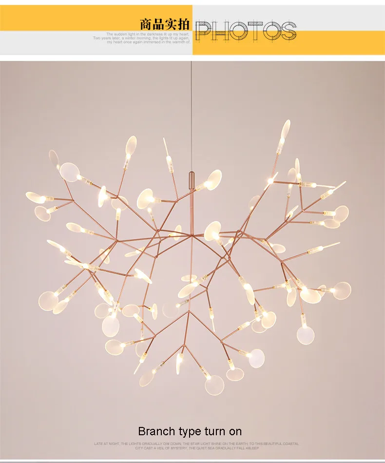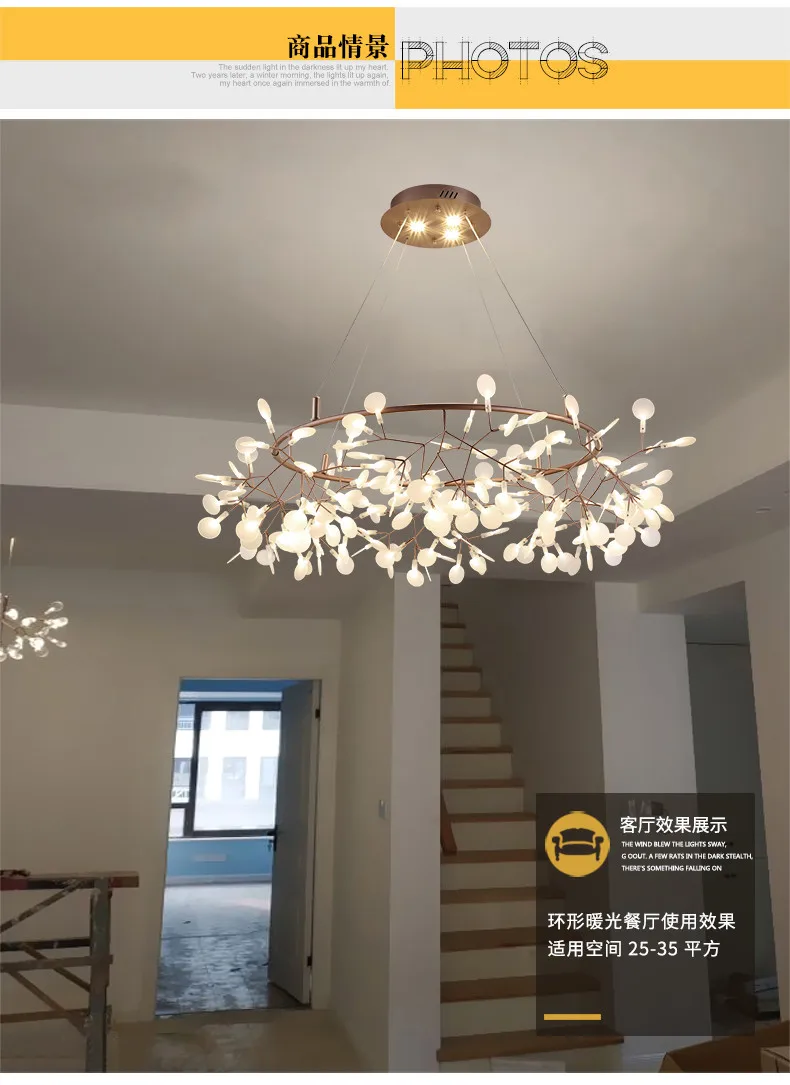 Kobuc Романтический Светлячок светодиодный светильник-люстра стильная ветка дерева/круглая металлическая столовая Ресторан потолочный Точечный светильник-люстра