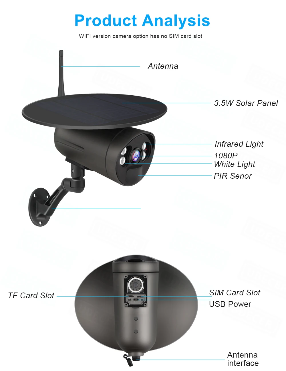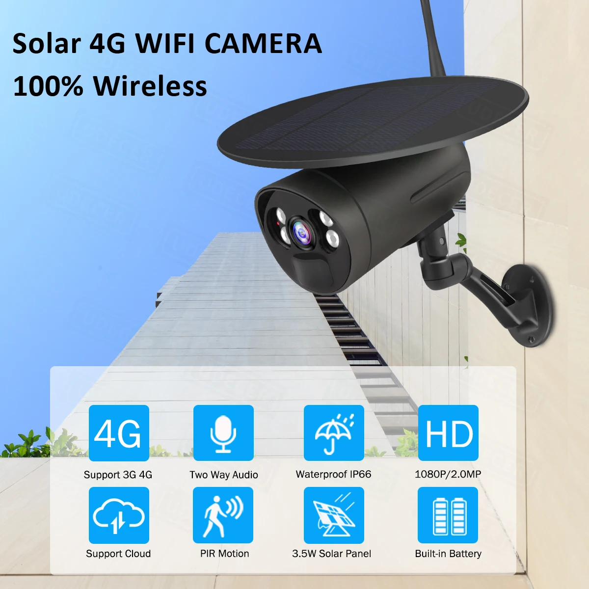 IP66 Всепогодный дизайн предлагает вам почти не ограниченное размещение! Работает с нашей солнечной панелью, он может работать непрерывно, не снимая для замены батареи или подзарядки, он может прекрасно работать в солнечные сезоны.