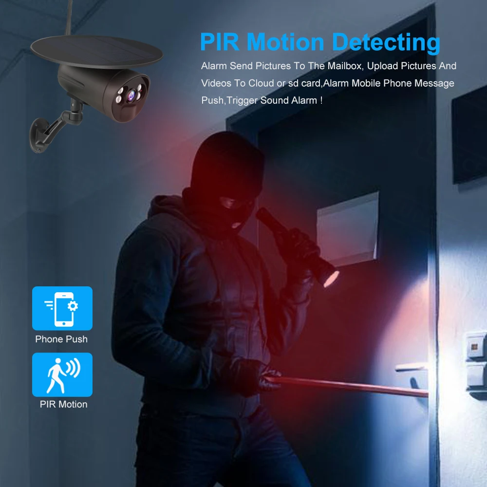 Чувствительный датчик движения PIR практически не предлагает ложных сигналов тревоги. Ни одно движение человека не может проскользнуть без вашего уведомления. Получайте мгновенные push-уведомления приложения при обнаружении событий движения. Вы избавитесь от беспокойства о дожде или снегу ложной сигнализации в течение всего дня.