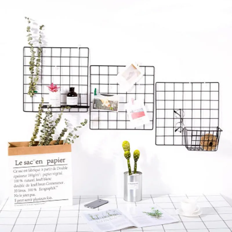 Железная полка в скандинавском стиле, 20x20 см/35x35 см, сетка для декора стен «сделай сам», настенное украшение, рамка для фотографий, открыток, настенный художественный дисплей, сетка органайзер, держатель, стойка