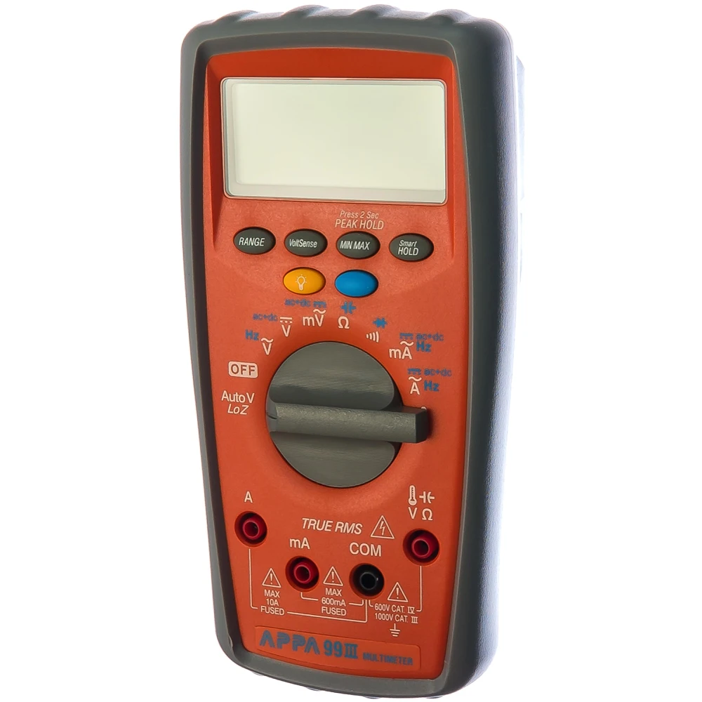 Мультиметр APPA 99III прост и удобен в обращении. С его помощью осуществляется измерение параметров напряжения, постоянного и переменного тока, сопротивления, емкости, частоты и температуры.