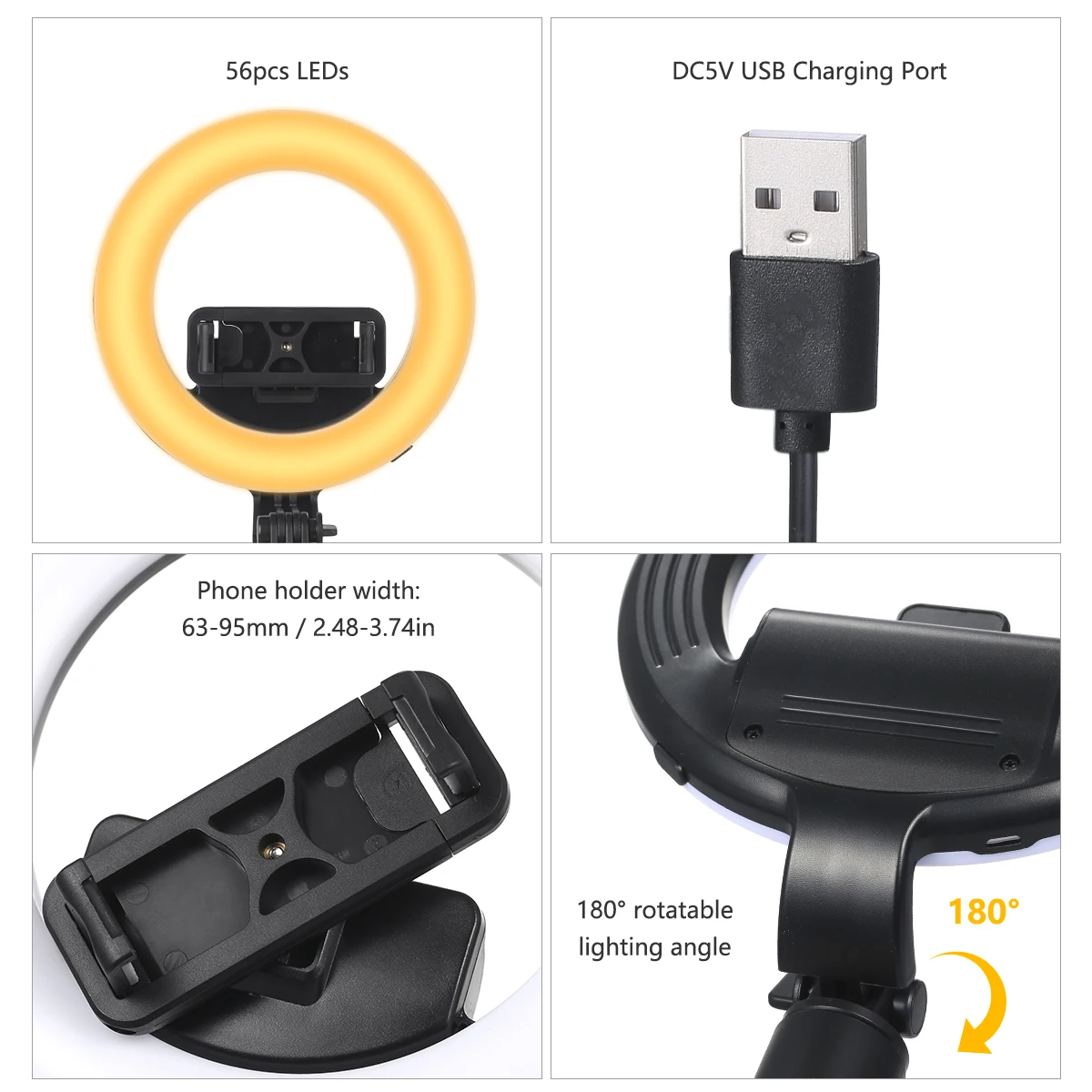 Кольцевая лампа для селфи имеет 56 светодиодных бусин для длительного срока службы, низкое энергопотребление.