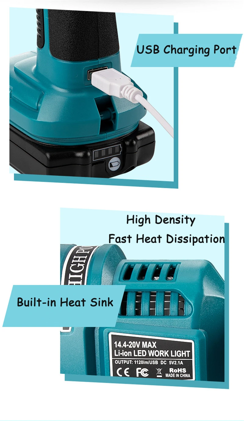 Выход USB 5V 2.1A, с адаптером и литий-ионным аккумулятором серии Makita 14,4 v 18v LXT вы можете заряжать свой мобильный телефон и другое USB-устройство.