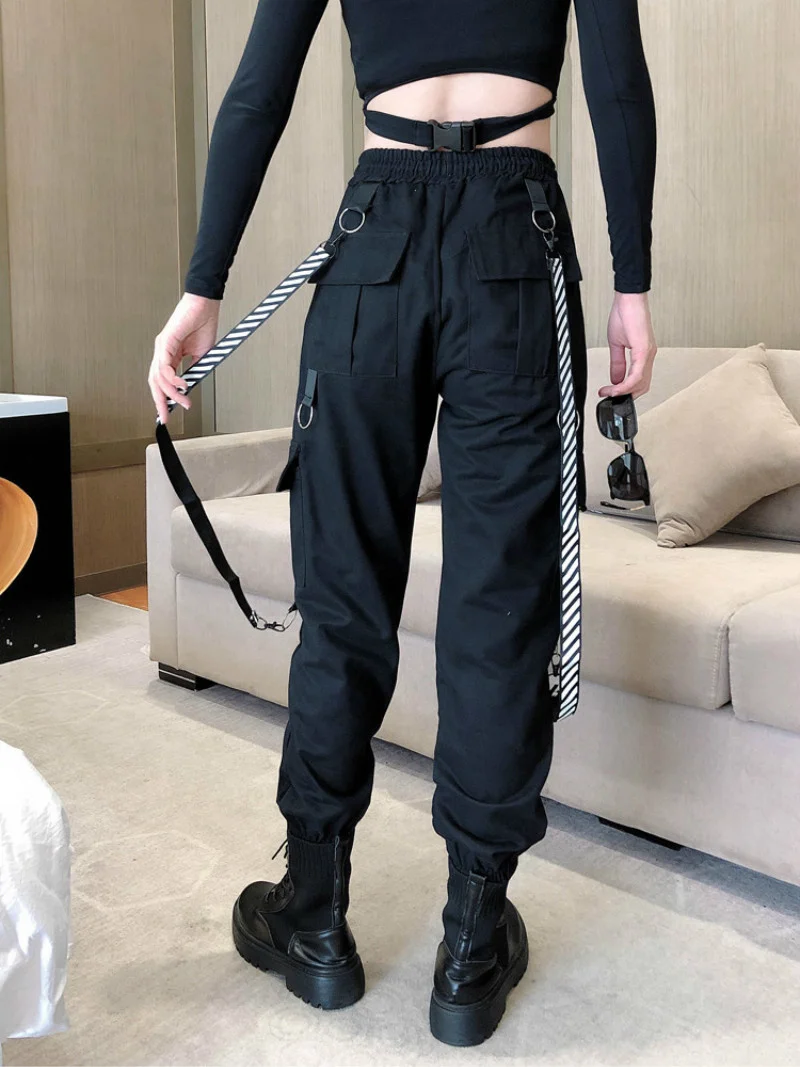 Брюки-карго в стиле хип-хоп с высокой талией и лентами