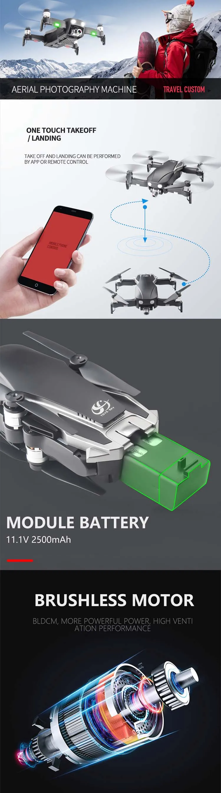 Бесщеточный двигатель, независимый ESC, высокая устойчивость к ветру, низкие помехи, низкий уровень шума, плавная работа и длительный срок службы