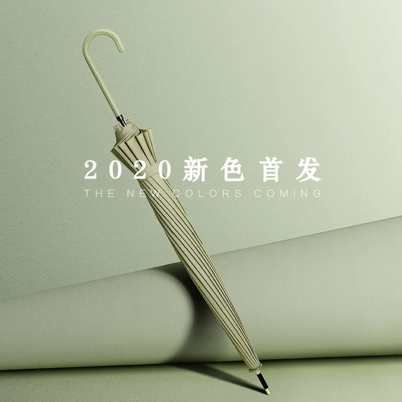 Новинка 2020, маленький женский зонт с длинной ручкой, кожаный Зонт с изогнутой ручкой, однотонный зонт