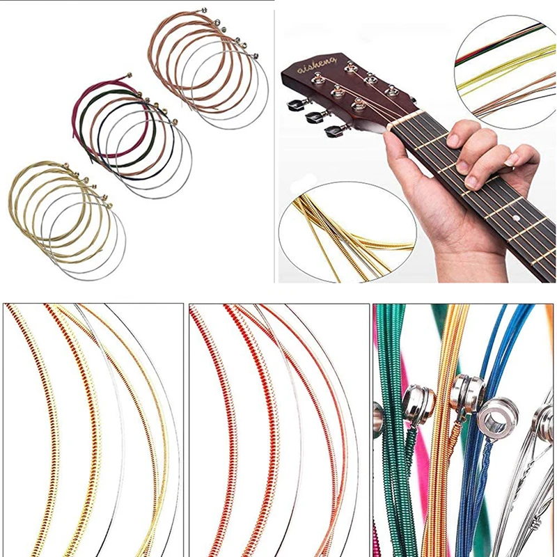 【 3 комплекта струн гитары 】 гладкие и сбалансированные струны, изготовленные из бронзы с нержавеющим покрытием. 1 набор разноцветных, 1 набор красных, 1 набор золотых; В каждый набор входит 6 гитарных струн. E-1st .012 дюймов; B-2nd .016 дюймов; G-3rd .024 дюйма; D-4th .032 дюйма; A-5th .042 дюйма; E-6th .053 дюйма.