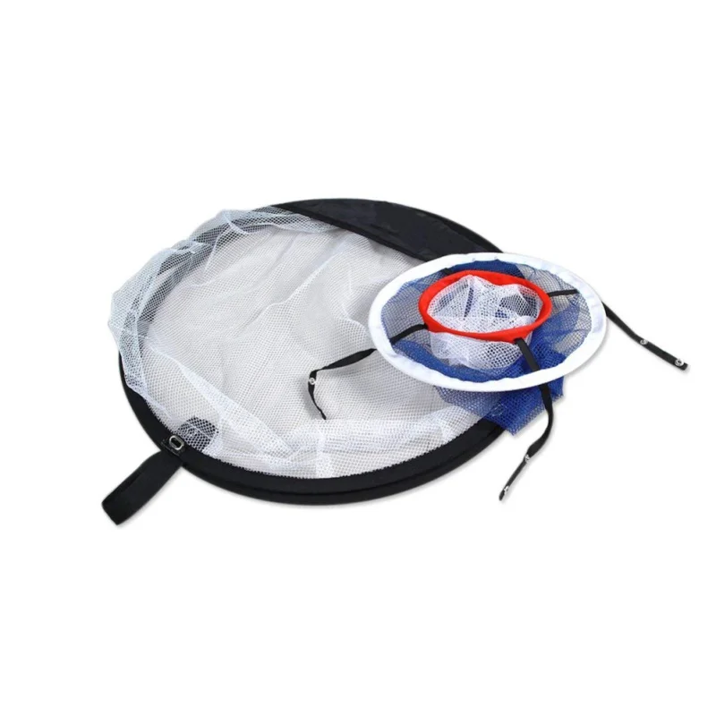 Тип: спортивная сетка для гольфа Цвет: черный + белый Материал: металл + сетка Установленный размер: 570*570*570 мм Размер складывания: диаметр 330 мм x Толщина 60 мм Малый размер коробки: диаметр 215 мм