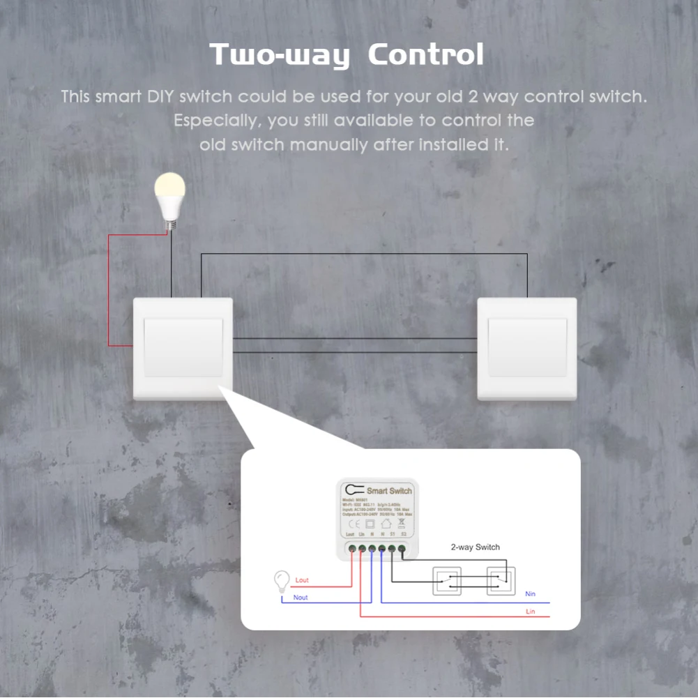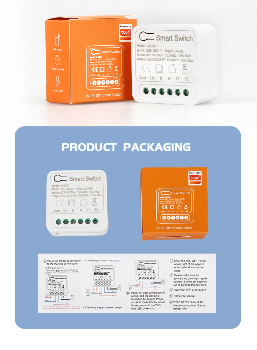 Его также можно подключить за переключателем для поддержки одного переключателя управления и двойного переключателя управления. Он может быть непосредственно установлен в коробке переключателя, чтобы скрыть модуль переключателя. Он также может быть установлен на двойном переключателе управления, не влияя на использование двойного переключателя управления.