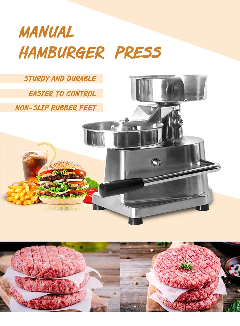 1. Изготовлен из алюминиевого сплава + лоток для контакта с пищевыми продуктами из нержавеющей стали, очень прочный и долговечный. 2. Используя простой закон механики, можно меньше усилий для прессования мяса. 3. Полностью ручная работа, без электричества, может очистить его непосредственно водой. 4. Диаметр гамбургера: 100 мм/130 мм. У нас также есть большой размер диаметром 150 мм. 5. Верхний контейнер вмещает маслостойкие бумажные сепараторы для удобства. 6. Доставка с 500 шт бургер ПРЕСС масляной бумаги.